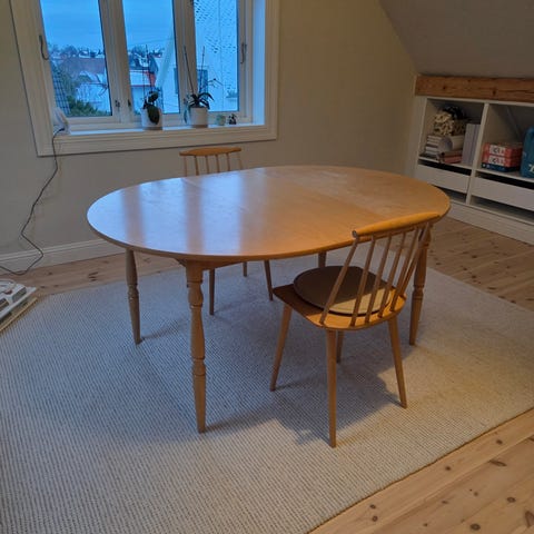 Gammelt men lite brukt kjøkkenbord med integrert klaffe
