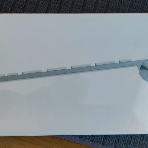 Apple Magic Keyboard tilleggsutstyr i hvit farge med aluminiumskropp. Tastaturet har norsk layout og er designet for bruk med Apple-enheter.