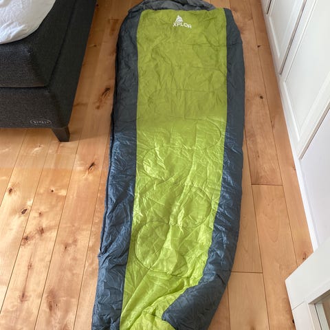 Ubrukt Xplor Røldal Junior sovepose i blå farge. Soveposen er designet for juniorbruk og har en kompakt pakkestørrelse for enkel transport og oppbevaring.