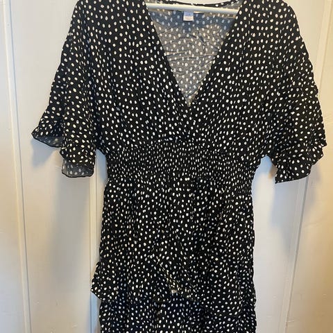 AMISU Hverdagskjole i størrelse S, svart farge. Kjolen er laget i et gjennomsiktig, mønstret materiale med lange ermer. Passer for kvinner.