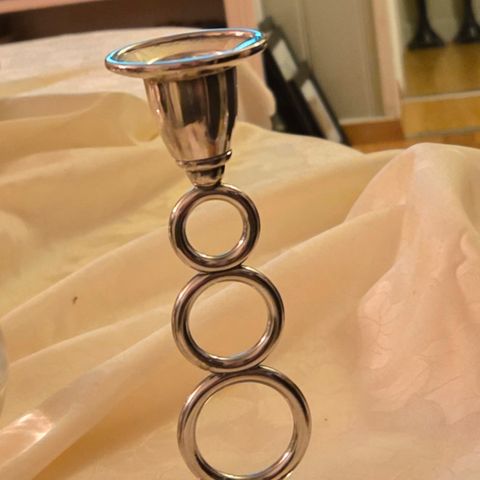 De to høye måler ca 18 cm og foten har en diameter på ca 10 cm.