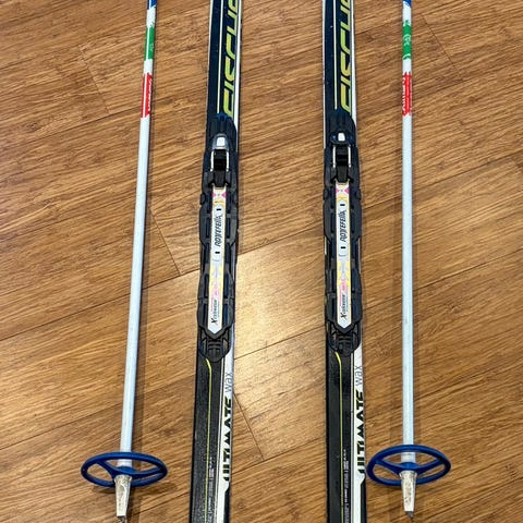 Fischer ski 187 cm, med Alpina sko i størrelse 46 og Fischer ski 169 cm med Alpina sko størrelse 37. Selges sammen for 500 kr eller 300 kr per stk. ikke sende