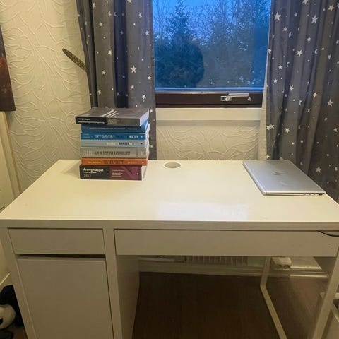 Pent brukt skrivebord fra IKEA selges grunnet flytting. Kan hentes i Oslo. Et par merker på skrivebordflaten, ellers fin.