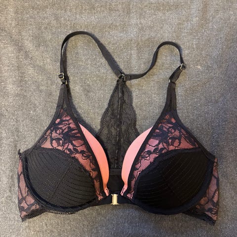 Denne pushup-BH-en er laget av glatt stoff. Skålene er i mesh med glatt stoff øverst. Mesh-stoffet er pyntet med et stripemønster.