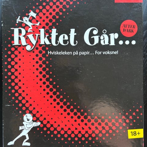 Ryktet Går Brettspill på norsk, beregnet for voksne 18 år og eldre. Spillet inkluderer notatbok med spiralrygg, flere tusjer, og spillkort. Spillet går ut på å viskeleke på papir, hvor man skriver og tegner for å formidle ord og setninger.