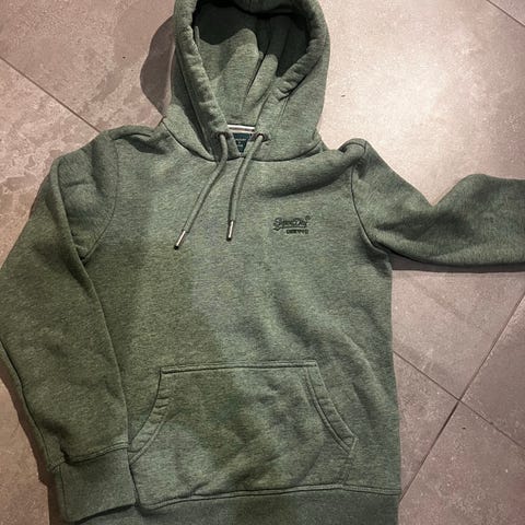 Selger kul hettegenser fra Superdry, nydelig blåfarge. Str XS. Passer ungdom 12-14 år ca. Vi har fjernet noen klistremerker med japanske tegn (se bilde), man ser litt merke etter disse, men lite synlig. Selges derfor rimelig.