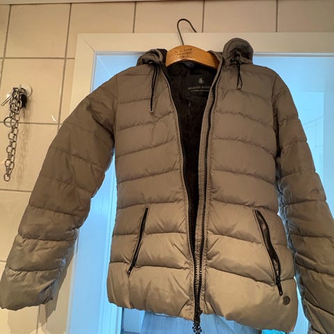 Luhta skijakke, damemodell, størrelse 36 i fargen beige. Fine detaljer, og den er brukt kunne en gang. Jakken har hette, glidelåslukking, lommer med glidelås, og er laget for utendørs bruk med snølås. Sporty jakke som selges pga. feil størrelse.
