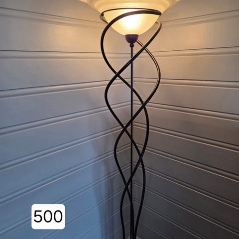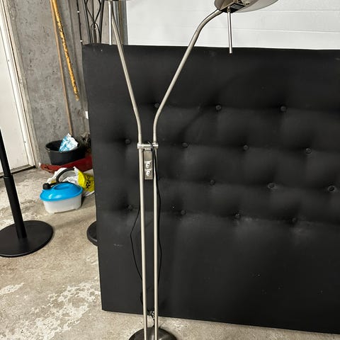 Ikea stålampe, lyser som den skal men har blitt litt vinglete med årene. Selges med pærer.