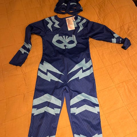H&M Barn Kostyme i svart farge, størrelse 122, egnet for både gutter og jenter. Kostymet inkluderer en heldrakt med detaljer som gir et karakteristisk utseende, samt en matchende maske.