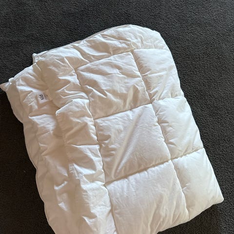 Selger en Alvøy helårs dundyne som inneholder 90% hvite andedun og 10% hvite andefjær. Størrelse 100x140 som passer til juniorseng.