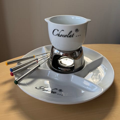 Søkeord: kjøkken kjøkkenutstyr sjokolade fondu fondue fondusett fonduesett