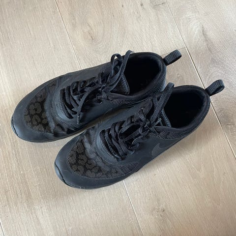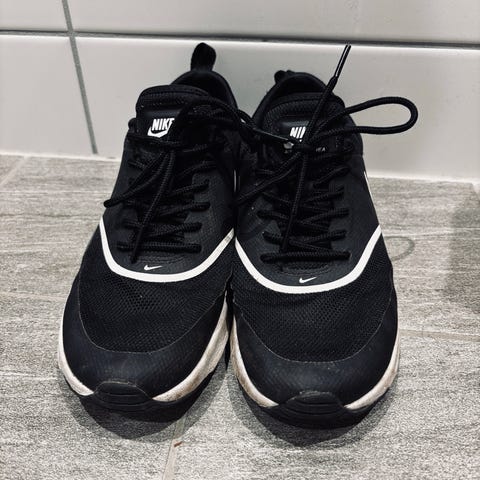 Brukte Nike-sneakers gis bort da de ikke lenger brukes. Kule sko som er gode å gå i! Tydelig slitt såle og trenger litt kjærlighet. En lisse har røket, men fungerer fint likevel:-)
