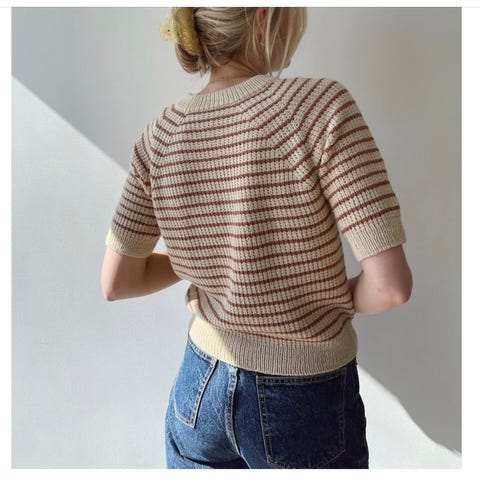 Hjemmestrikket Sunday tee fra Petite knit strikket i tynt ullgarn, i en rustrød farge. Noen nupper foran man kan ta bort med nuppefjerner. Lengde fra skulder 53 cm, bredde 48 cm.