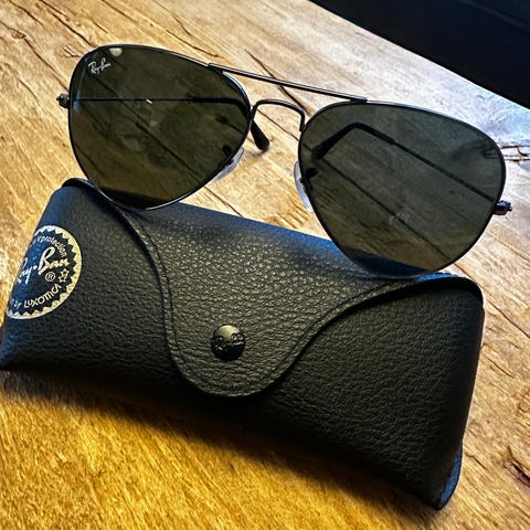 Arvet noen solbriller som skal være gamle, og originale. Noe for en samler. Brillene er tunge, og oser av kvalitet.