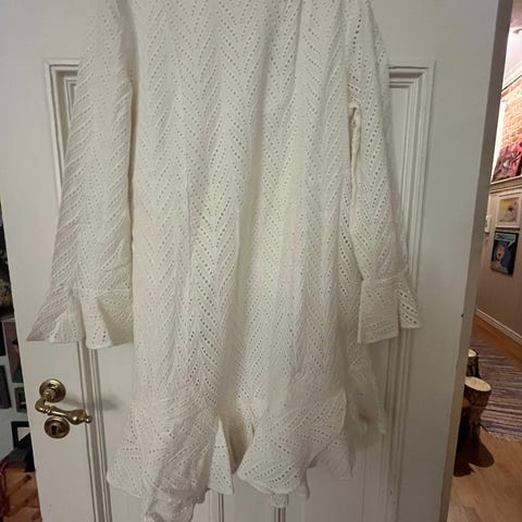 -Ella&il Flynn Herringbone Sommerkjole i størrelse M, hvit farge. Kjolen har et herringbone mønster og er designet for kvinner.