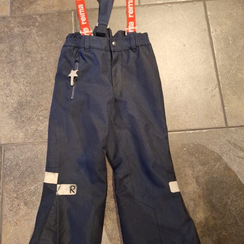 Reima tec vinter-/skibukse i størrelse 110, grå farge, unisex modell. Laget for barn med slitesterkt materiale, har justerbar midje, bukseseler og snøfang på innsiden av bena. Designet for å gi komfort og beskyttelse ved utendørs bruk.