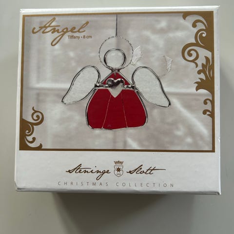Tiffany engel rød 15 cm . Ubrukt i eske. Kan sendes med Post Nord 69kr