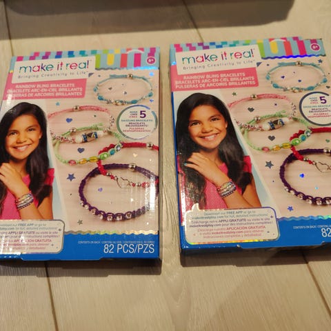 Colorful Loom Band med rammer, kroker, gummibånd og instruksjonshefte.