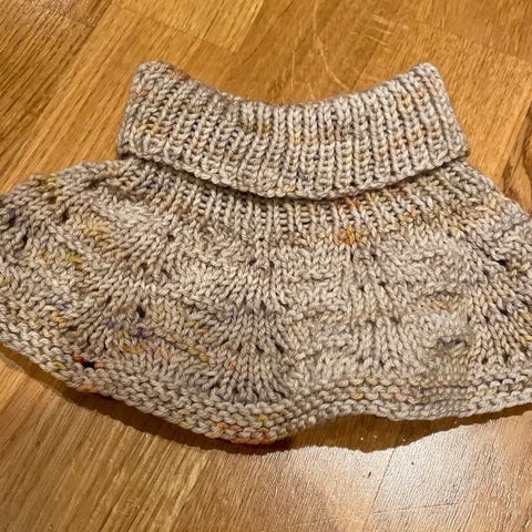 Hjemmestrikket hals i gul farge. Ca str 1 år.