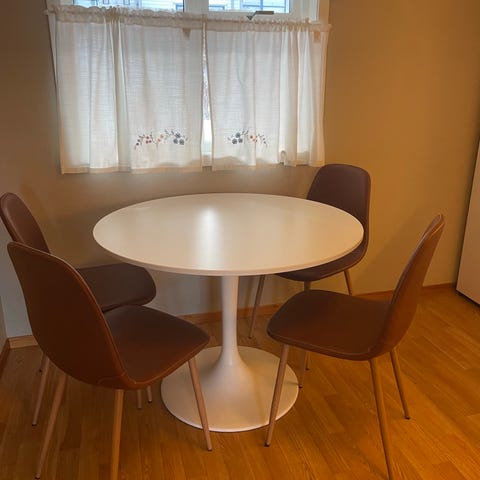 «Trend» spisebord fra Skeidar i lakkert metall. Selges pga ble litt for lite for oss. Kjøpt nytt i august, minimalt brukt, ingen merker!