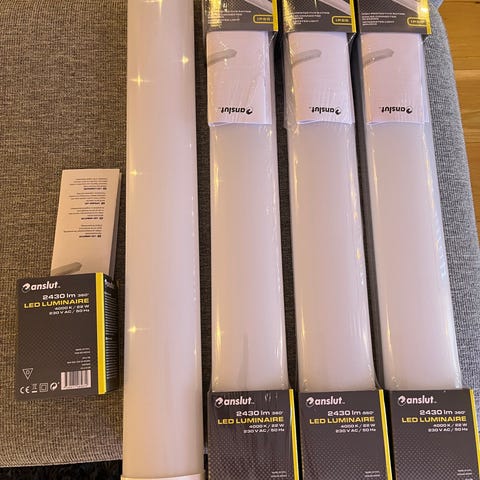 3 stk ubrukte lysarmaturer med 5 stk nye lysrør selges samlet til 400kr.