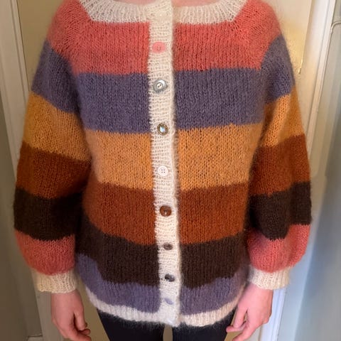 Hjemmestrikket Sorbet Cardigan, str M, pent og lite brukt.