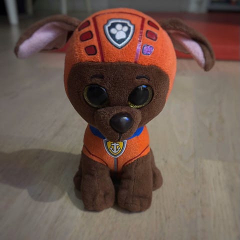 Min sønn selger en Rocky bamse fra paw patrol for å lage plass til årets julegaver ;). Veldig pent brukt!