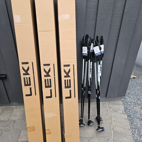 Leki Ts series skistaver med en lengde på 135 cm. Staver er hvite med svarte håndtak og stropper. Laget av karbonmateriale for lett vekt. Overlevering etter avtale.