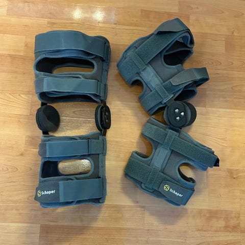 Schaper SCT100 kneortose i størrelse small, Ortosen har justerbare spaker for å kontrollere bevegelsesutslag og er laget for støtte og stabilisering av kneleddet. Materialet er mykt og polstret for komfort ved.Til bruk om man har hatt strekk, skade, operasjon.Kan brukes direkte utenpå klær.