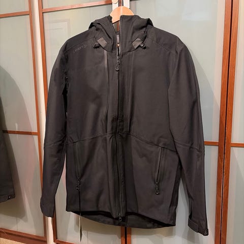 Pent brukt skalljakke fra Warrior Wear med mange lommer og hette selges. Merket som 2XL,men er litt mindre enn det i størrelsen (mer som vanlig XL). Materiale i jakken er 90,5 % polyester og 9,5 % spandex.