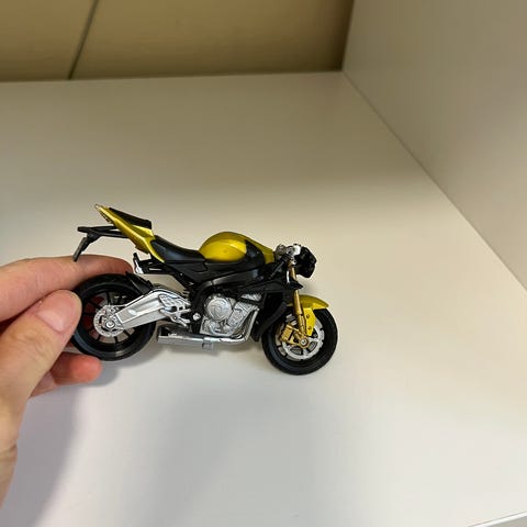 Marvel Motorsykkel 3 hjul i gul og svart farge. Laget av plast og metallmaterialer. Designet som en motorsykkel med brede dekk og detaljer som speil, styre og sete. Egnet som leketøy for barn.