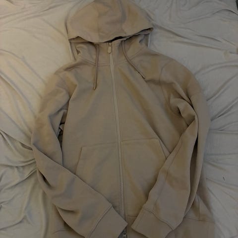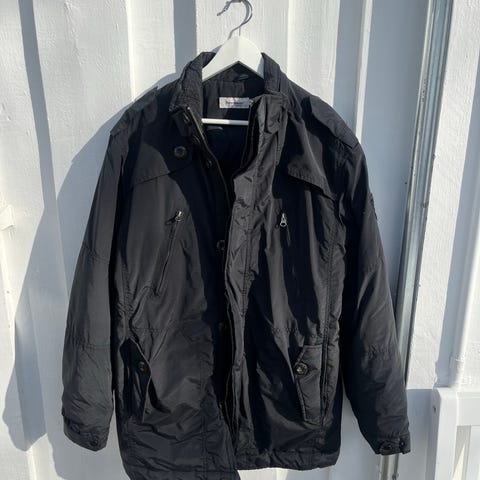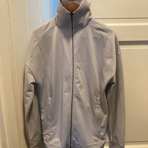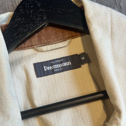 Dressmann jakke i hvit farge, størrelse M for menn. Jakken har glidelås foran og er laget for hverdagsbruk.