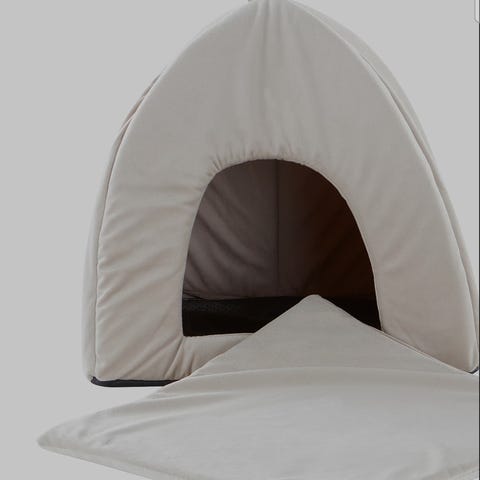 Ukjent Merke Katt/hund Hule laget av stoff i grønn farge. Designet som en lun og beskyttende sovested for kjæledyr. Passer for små til mellomstore katter eller hunder. Kan brukes innendørs som et komfortabelt hvilested.