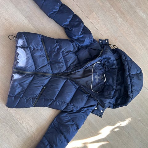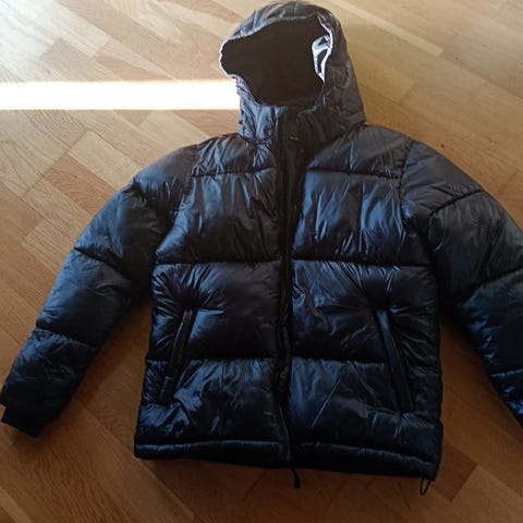 Svart dunjakke fra GANT med avtagbar hette. Lommer med trykknapp i siden for sikker oppbevaring og strikk i nederkant og ermelinning for en god passform. Printet logo på venstre bryst er dessverre borte; ellers ingen skader/merker.