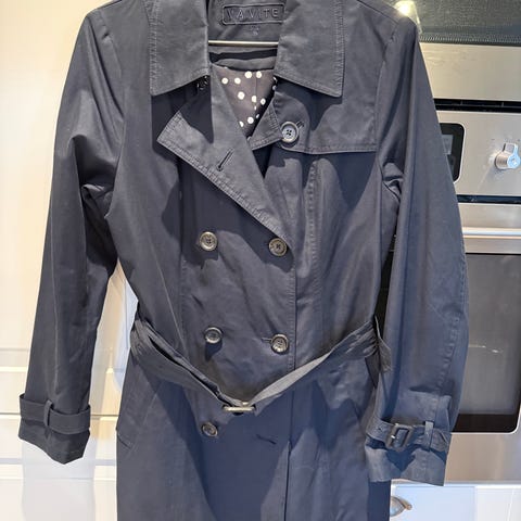 Va Vite Kåpe i blå farge, størrelse 40 for kvinner. Kåpen har dobbelspent knappelukking og belte i livet. Materialet er ikke spesifisert, men kåpen har et klassisk design med lange ermer og en innsvingt passform. Passer til bruk som ytterplagg i kjøligere vær.