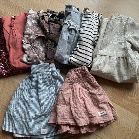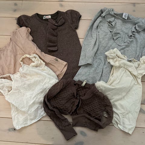 Klespakke med 9 kjoler, str 104.