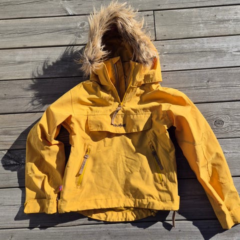 God anorakk. Den er okergul og korrekt farge er nærmest den fargen som kommer frem på bilde