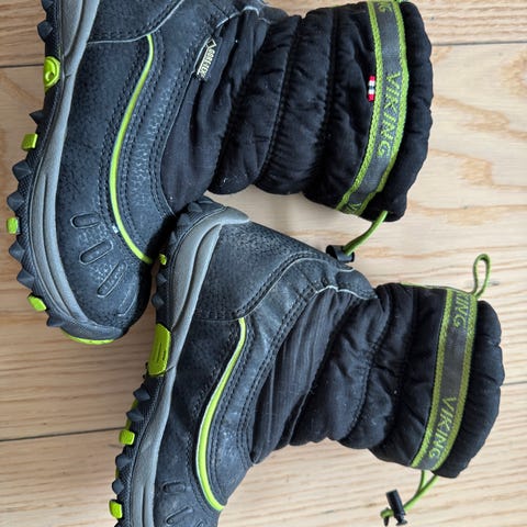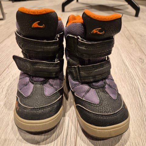 Viking barn vinterstøvler i størrelse 26, designet for jenter. Støvlene har en lilla farge og er laget med slitesterke materialer egnet for kalde og våte forhold. De har borrelåslukking for enkel justering og god passform, samt en solid gummisåle med godt grep.