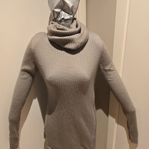 H&M premium genser i størrelse M for damer. Genseren er laget av grå merinoull, som gir varme og komfort. Den har en enkel design med rund hals og lange ermer. Som ny - brukt et par ganger og plettfri.