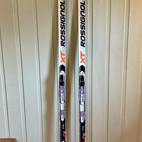 Rossignol Touring langrennsski med bindinger. Skiene er designet for turkjøring og har et blått og hvitt fargemønster. Passer for langrennsløpere som ønsker ski til turbruk. Stavene følger med.