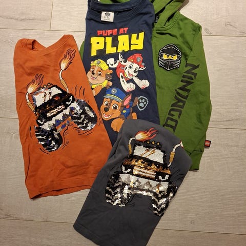 Pent brukt av ett barn. Har noen få løse tråder, men ingen hull. Romslig i størrelsen.