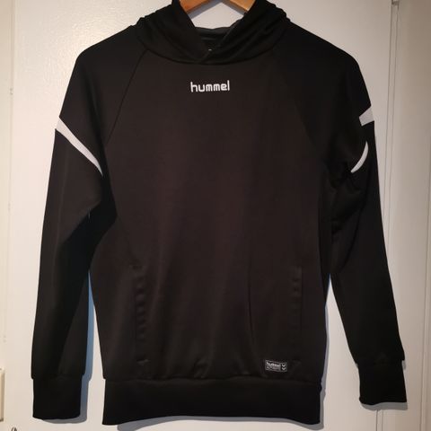 Hummel fotballjakke i størrelse S, unisex, i marineblå farge. Jakken er laget for bruk i forbindelse med fotball og har et design som passer både gutter og jenter.