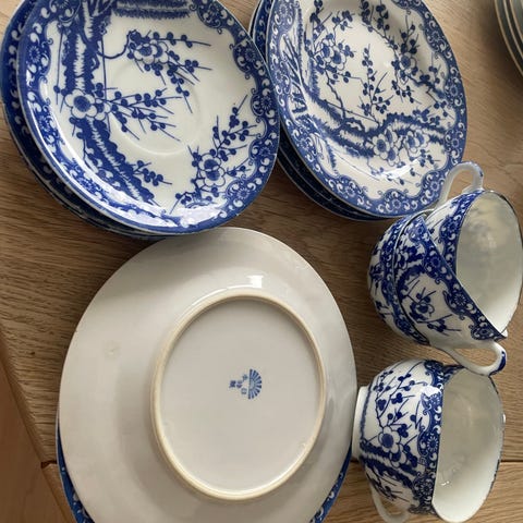 6 nydelige krus og fire flotte asjetter/frokosttallerkner fra Roy Kirkham. Et svakt bruksmerke på en tallerken, knapt synlig. Se bilde. Kjøp alle ti deler samlet for 800 kr. Sendes mot tillegg for porto. Forhåndsbetaling med vipps. Bruker ikke Fiks ferdig.