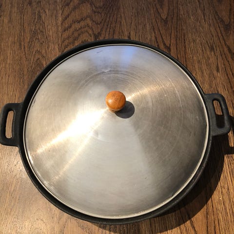 Ukjent merke wokpanne med non-stick belegg. Diameter på 28 cm. Håndtak i svart materiale. Egnet for matlaging med mindre fett og enkel rengjøring.