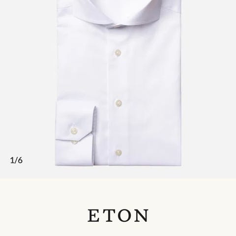 Oscar Jacobson Slim skjorte i hvit farge, størrelse 44.(Large). Skjorten er dessverre blitt for stor etter vekttap. Den er bare brukt et par ganger. Skjorten har en klassisk krage og langermet design. Passer til menn og er laget for en slank passform. Skjorten er strykefri