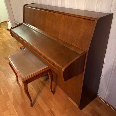 Selger et meget pent og svært lite brukt C. Bechstein Model 12 opprettstående piano, produsert ca. 1962–63. Dette er et ekte tysk kvalitetsinstrument fra Bechsteins gullperiode, kjent for varm klang, presis mekanikk og solid konstruksjon.
