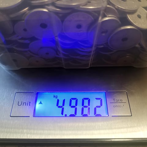 110 stk norske 1 kr mynter med hull