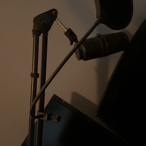 Enkelt mikrofonstativ med rund fot.