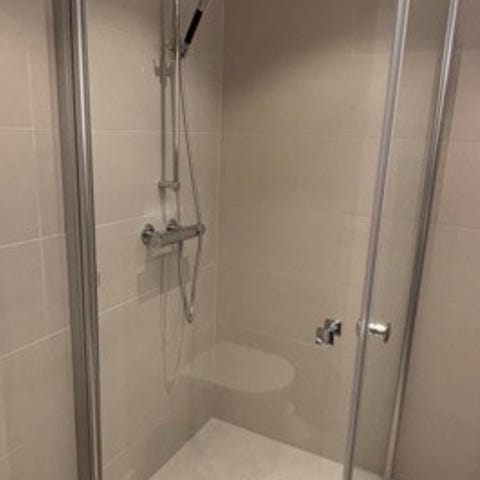 Passer til hjørnedusj. Materiale: herdet glass og metallramme i krom.