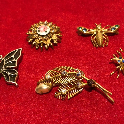 Vintage Humle insekt brosje laget av gullfarget metall. Brosjen har detaljer som etterligner en humle med svarte og gule markeringer. Passer som tilbehør til klær eller vesker.